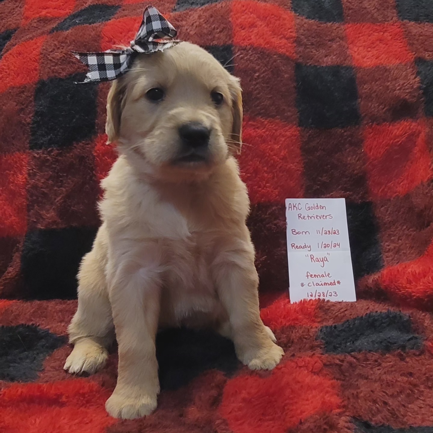 Raya is the youngest of our dogs. She is the daughter of Ariel and Kuzco. She is taller than her mom but is lean and super athletic like her. She weighs 65 – 70 pounds. Raya is sweet, loving, and full of energy. She is a light-medium gold color.